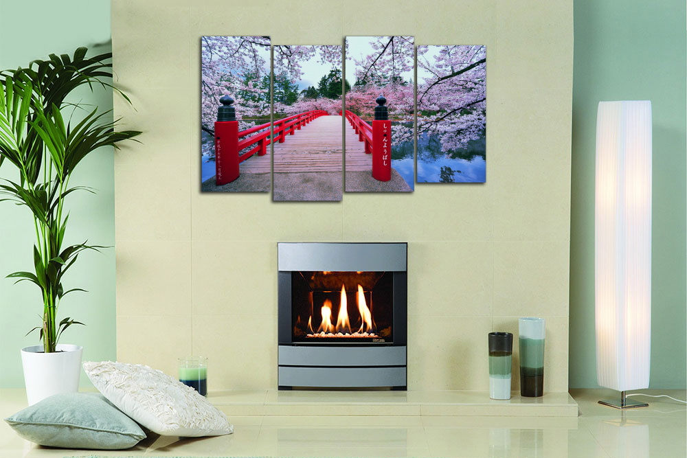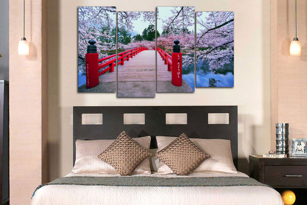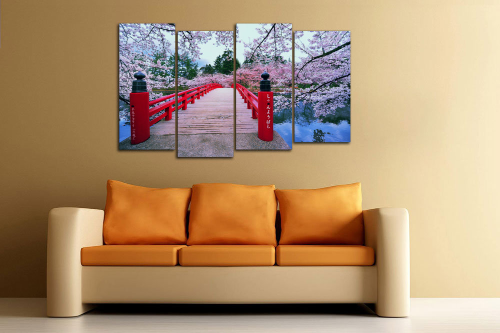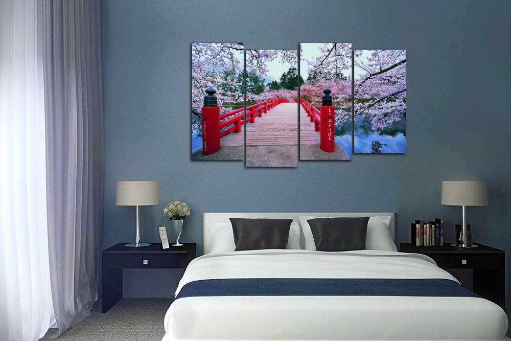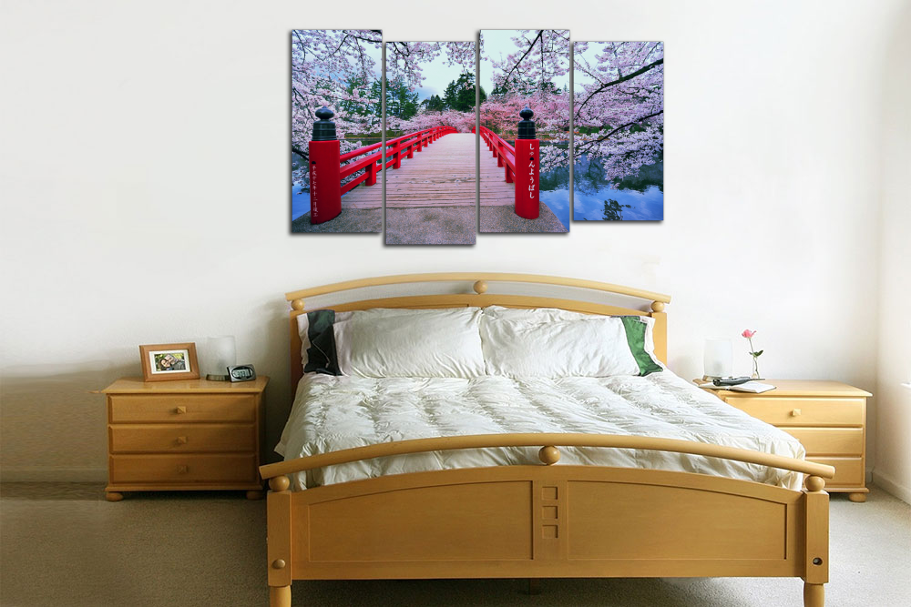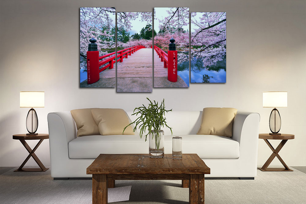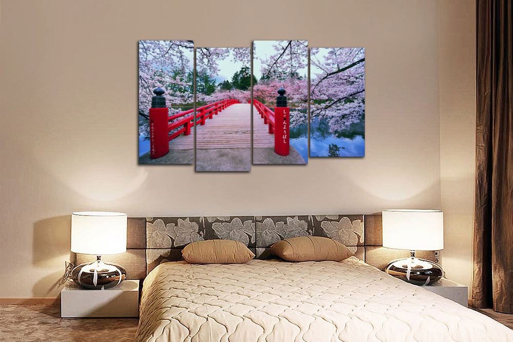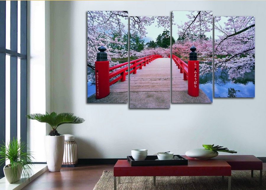 Модульная картина "Цветущий мостик. Сакура"