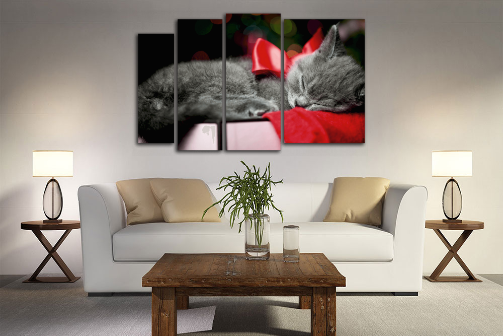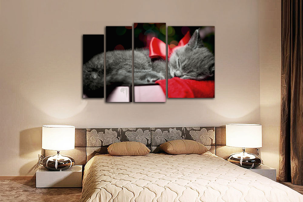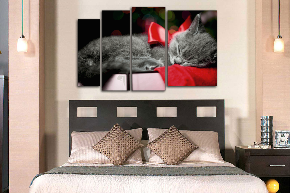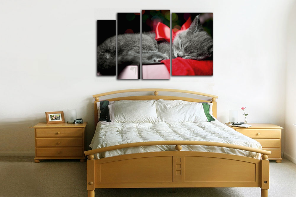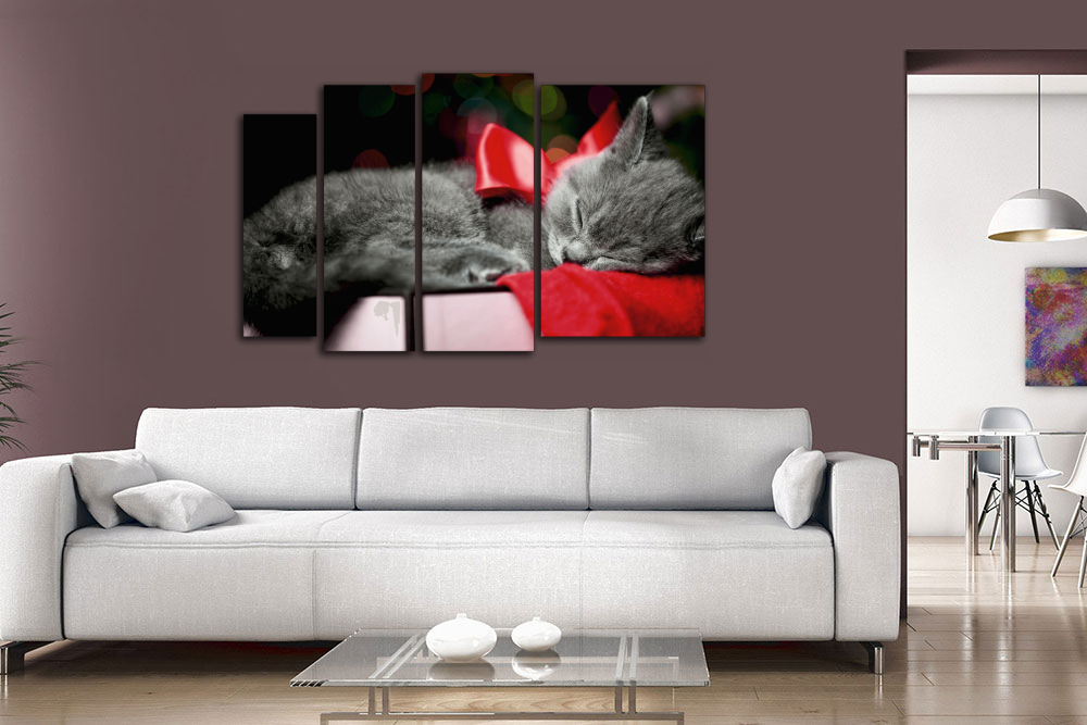 Модульная картина "Кот с красным бантиком"