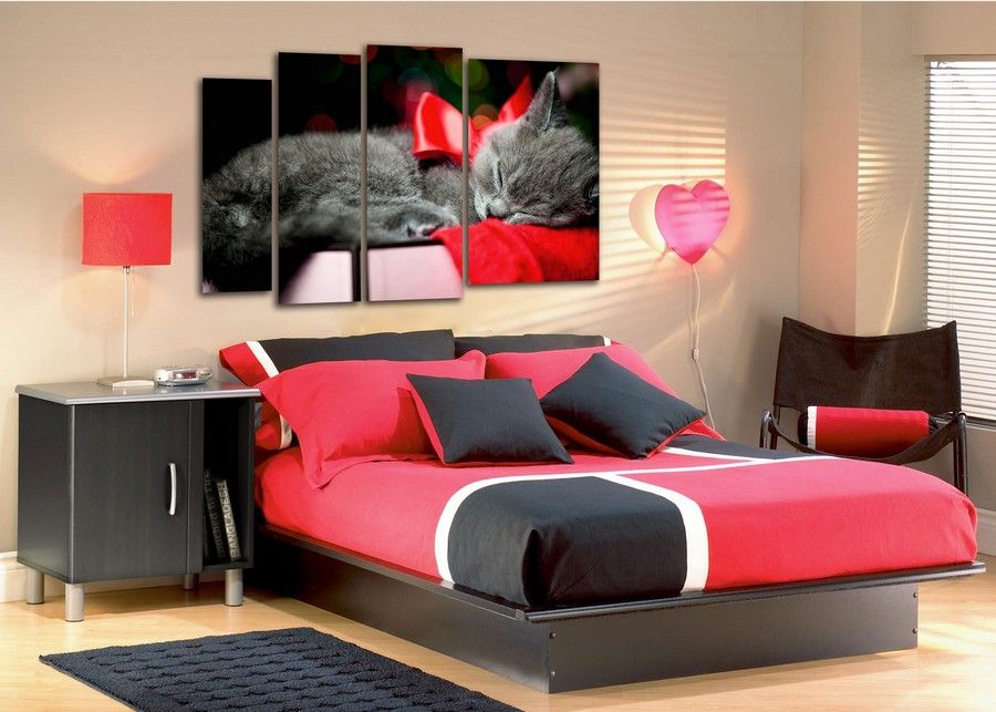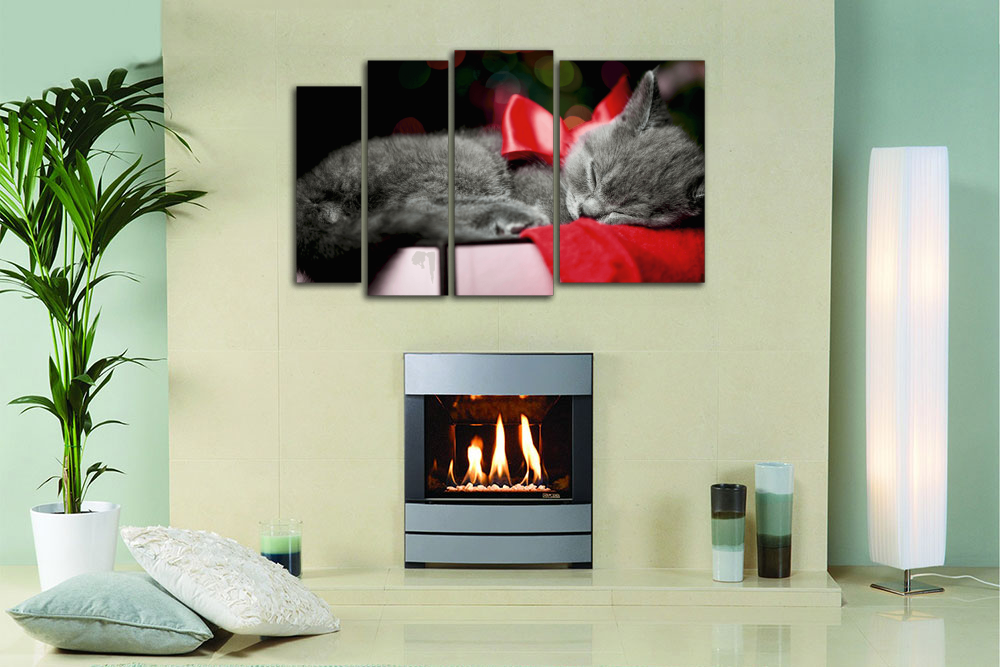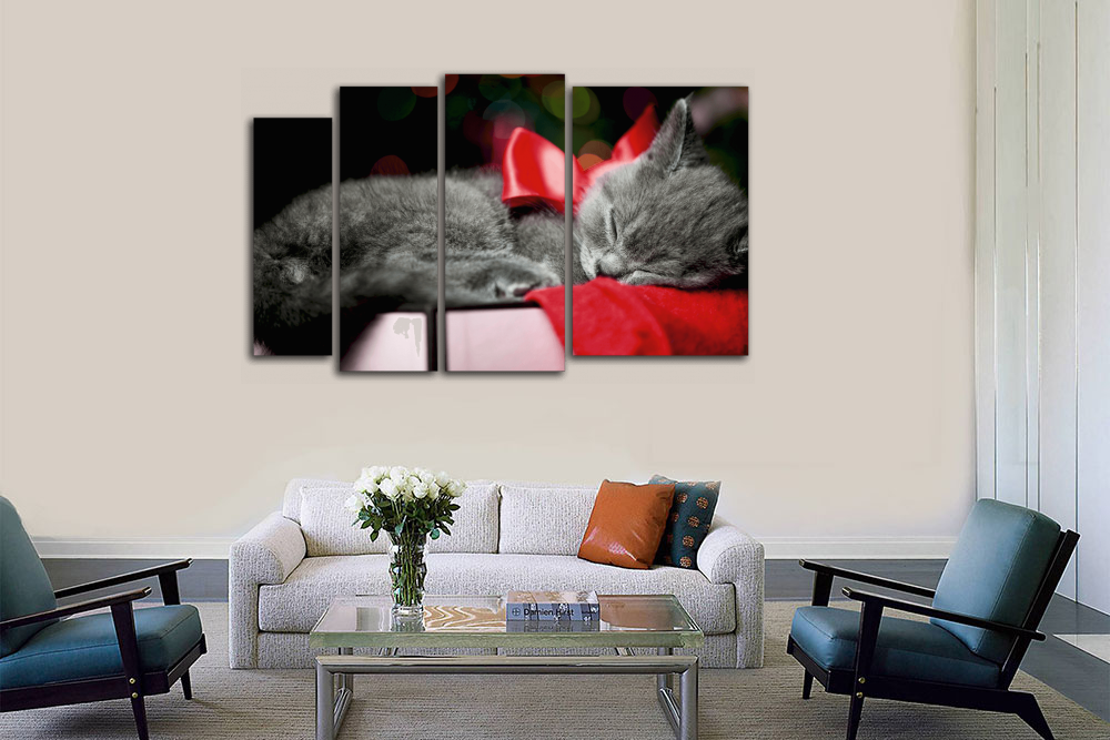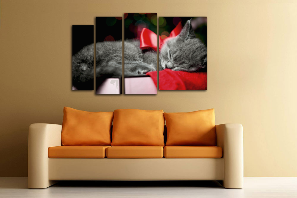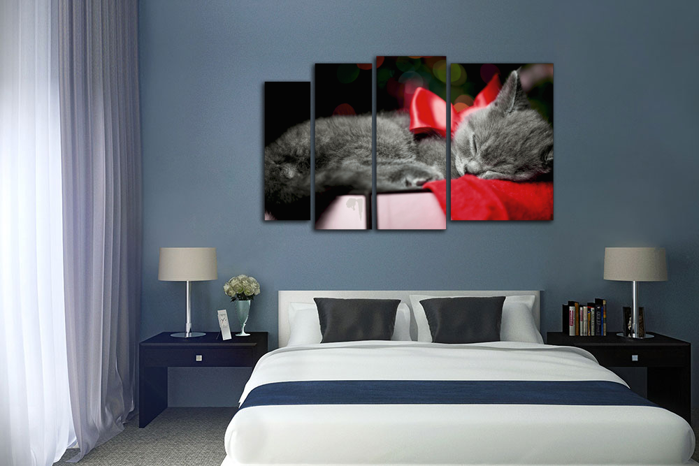 Модульная картина "Кот с красным бантиком"