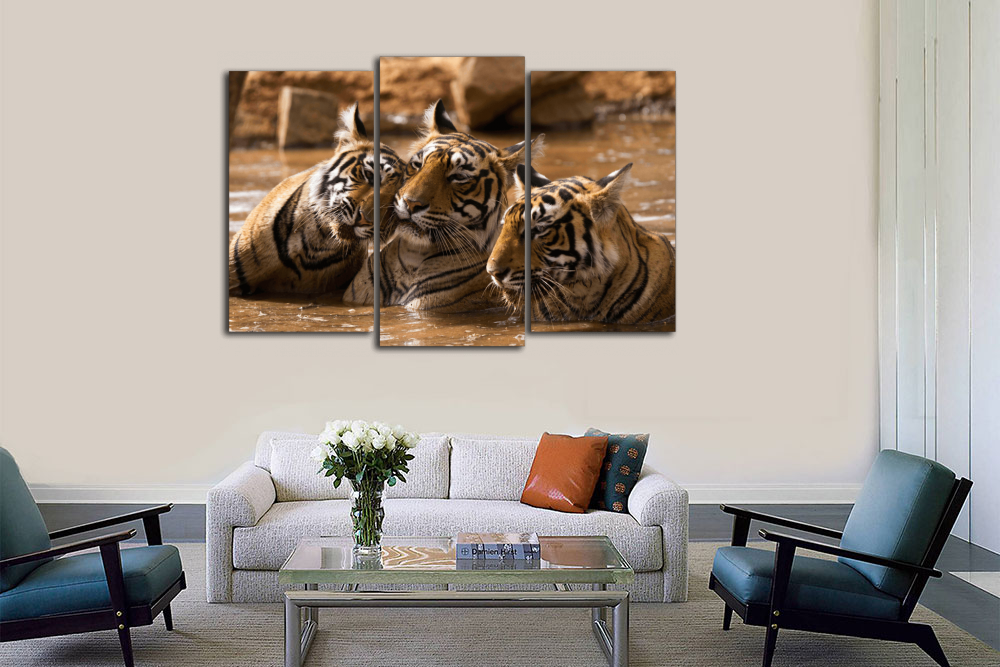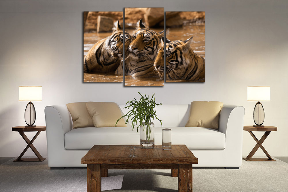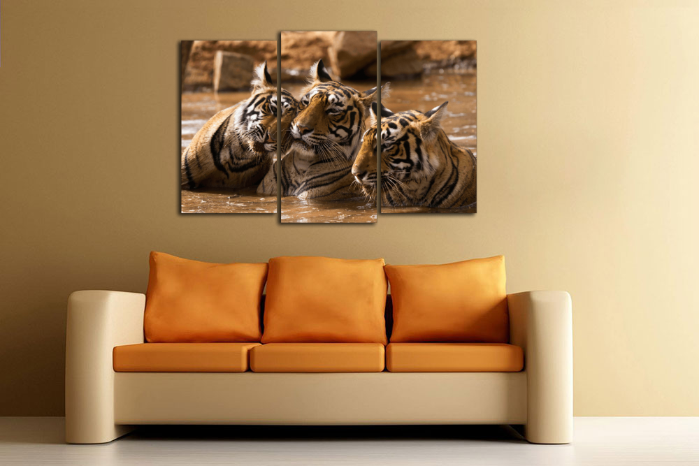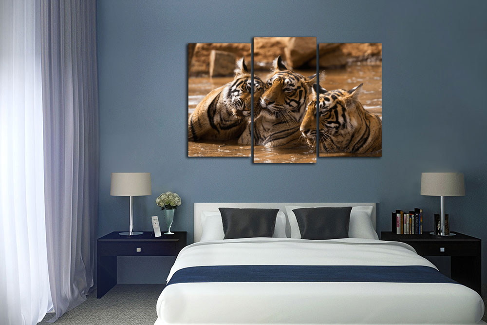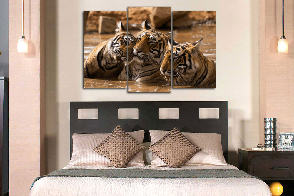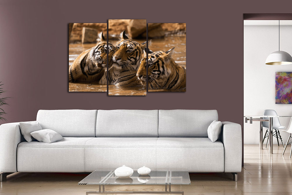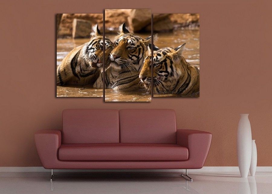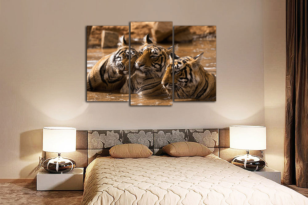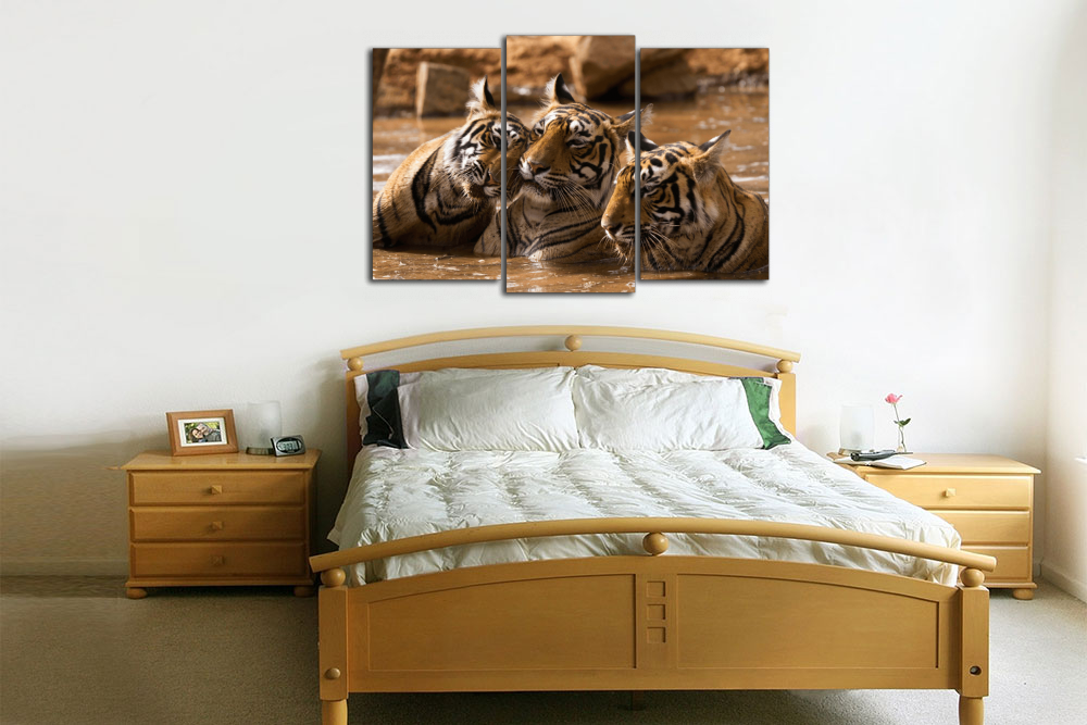 Модульная картина "Тигры в воде"
