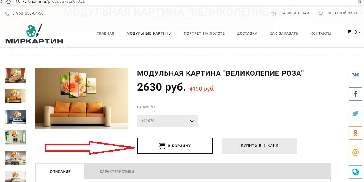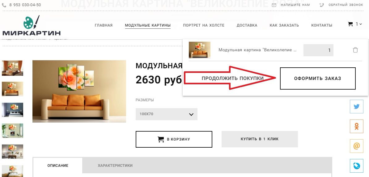 1. В первую очередь Вам нужно выбрать картину которую хотите заказать.