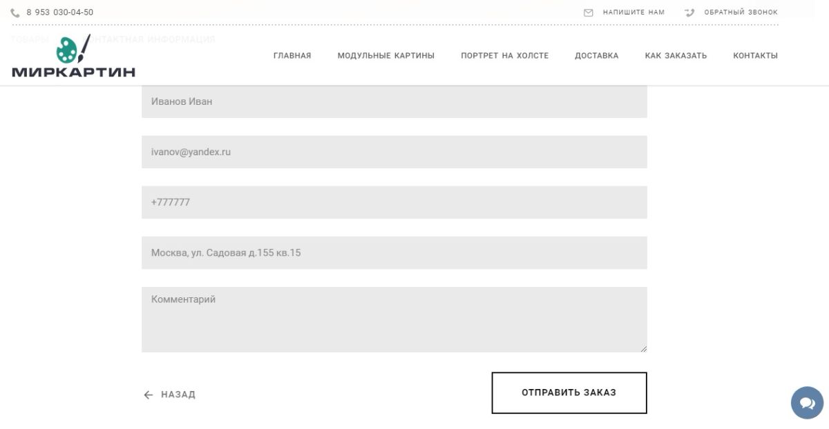 5. Следующим шагом заполните Ваши данные и нажмите кнопку "ОТПРАВИТЬ ЗАКАЗ"